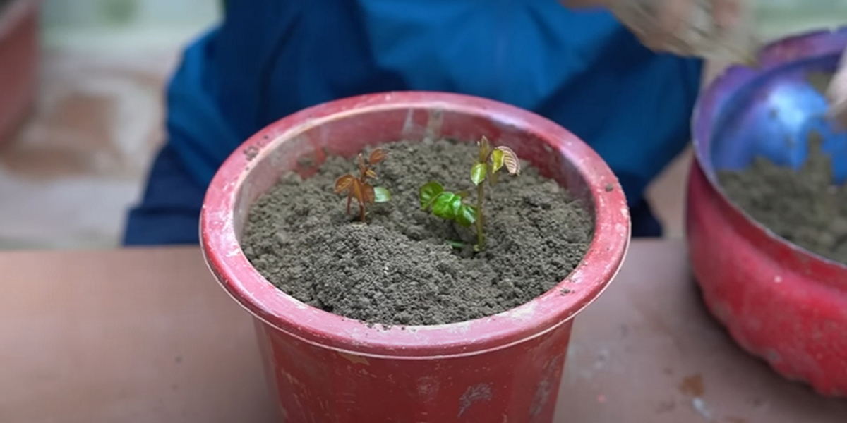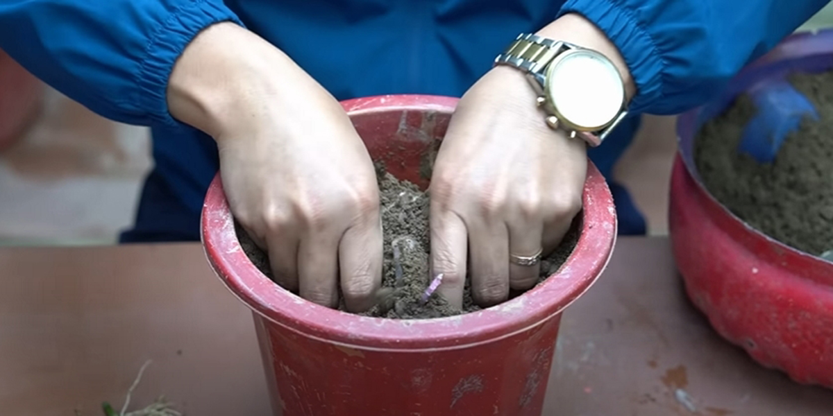 6. Plant it in a large pot with loose soil. Water it again with honey water.