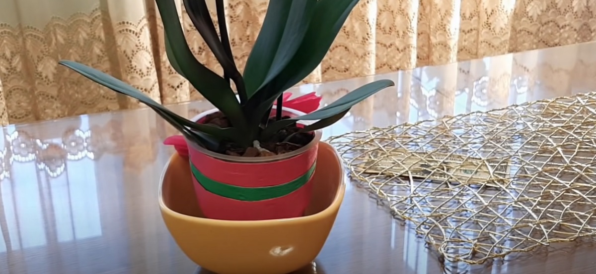 5.Place the orchid in a small bowl and pour the rice water over its substrate. Let it hydrate and feed on the nutrients in the rice for about 60 minutes.