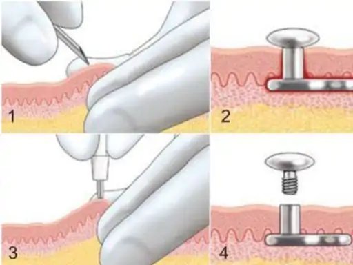 Method 1: Using a Needle: The piercer will use a needle to puncture your skin, creating a small “pocket” underneath. They’ll carefully pull the needle back out, leaving the pocket open. Method 2: Using a Skin Punch: Instead of a needle, the piercer uses a special tool called a skin punch. The skin punch removes a tiny piece of tissue, creating the pocket for the anchor. This is often considered less painful than the needle method.